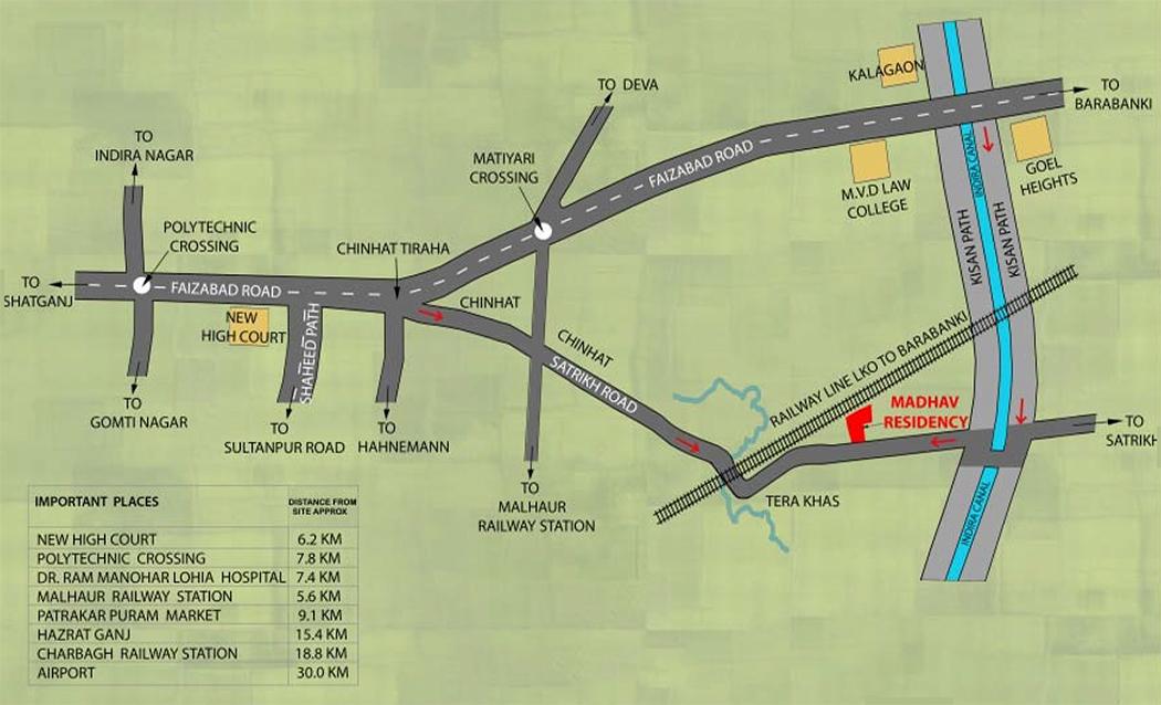 Arsha Madhav Residency Location Map | Kisan Path, Lucknow